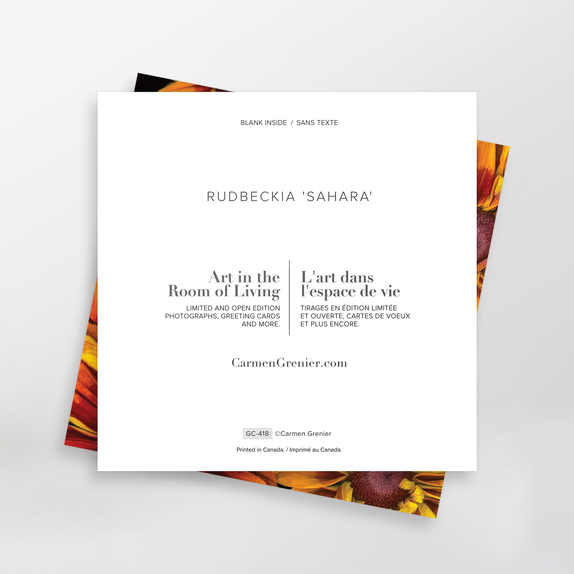 An alchemy of vibrant colours - copper, brown, orange and a hint of pink - against a rich inky background, this card makes a bold statement. Perfect for any occasion, it will leave a lasting impression.